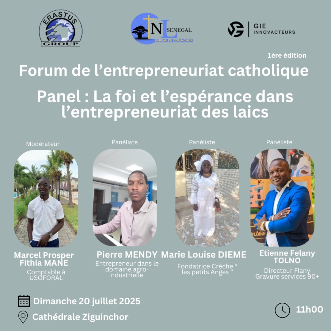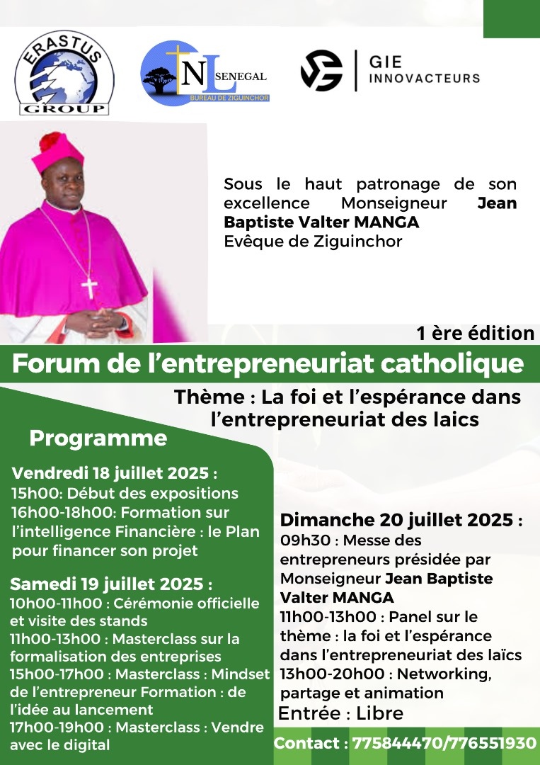 Le Forum de l’Entrepreneuriat 2025, organisé du vendredi 18 juillet 2025 au dimanche 20 juillet 2025 à la Cathédrale Saint Antoine de Padoue de Ziguinchor, a réuni des centaines d’acteurs économiques, porteurs de projets, investisseurs, institutions de soutien et jeunes entrepreneurs venus des quatre coins du pays.