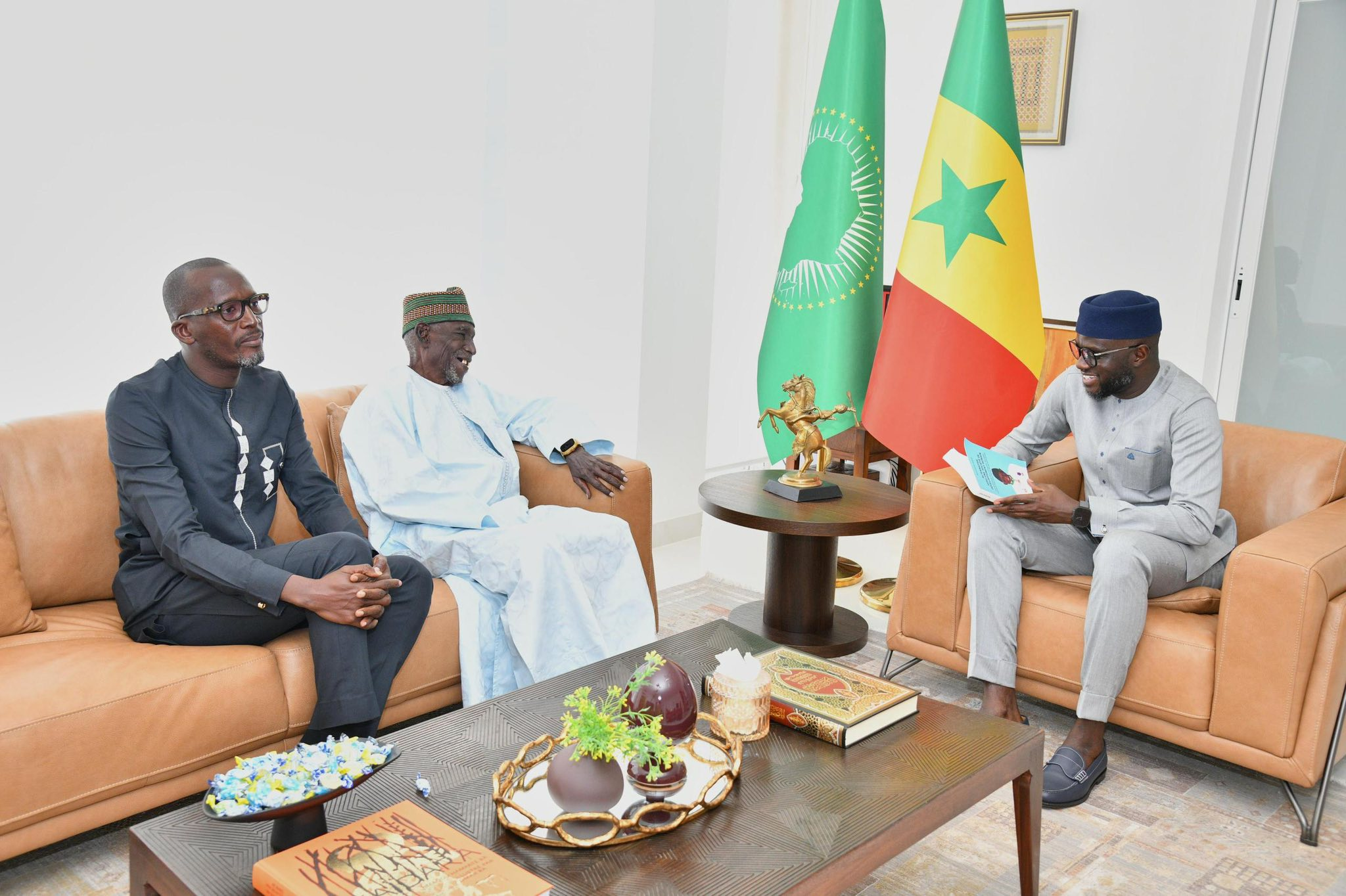 J’ai eu l’honneur de recevoir en audience, ce jeudi 12 juin, le Professeur émérite, doyen Moustapha Kassé, grand économiste, et l’honorable député, doyen Alla Kane, ancien inspecteur des impôts et des domaines, venus me présenter leur nouvel ouvrage, fruit d’une longue expérience et d’une réflexion profonde.